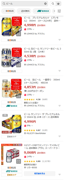 スマートフォンやアプリで検索したときは、最初の画面には上部3コマの商品までしか表示されないので、通常検索(SEO)で1位でもスクロールしないと表示されません。